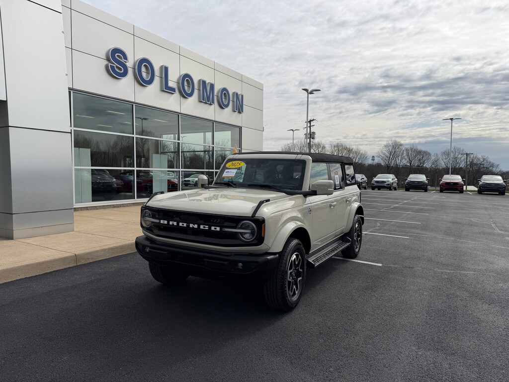 314A PACKAGE! THIS CERTIFIED 2025 FORD BRONCO OUTER BANKS 4X4 FEATURES A 2.3 ECOBOOST, LEATHER, SOFT TOP, FULLY EQUIPPED AND MUCH MORE TOO LIST! DON'T MISS THIS DEAL! THIS CERTIFIED PREOWNED VEHICLE GOES THROUGH A 172 POINT SAFETY CHECK AND COMES WITH THE REMAINING 3 YEAR/36,000 MILE FACTORY AND A 7YR/100,000 MILE POWERTRAIN WARRANTY! SPECIAL FINANCING IS AVAILABLE. NO CREDIT? NO PROBLEM, WE CAN HELP! WE ARE A CERTIFIED FORD DEALER, SO SHOP US WITH CONFIDENCE! WE NEED YOUR TRADE, AND WE WILL GIVE YOU TOP DOLLAR FOR IT! SOLOMON FORD, BROWNSVILLE, PA 724-785-5500. WWW.SOLOMONAUTO.COM
