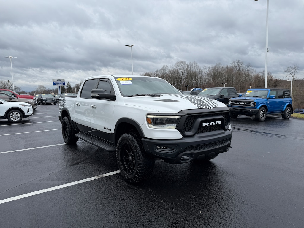 LEVEL 2 GROUP! REBEL 12A! THIS CERTIFIED 2021 RAM CREW REBEL 4X4 FEATURES A 5.7 HEMI, 25W PACKAGE, FULLY POWER EQUIPPED AND MUCH MORE TOO LIST! DON'T MISS THIS DEAL! THIS CERTIFIED PREOWNED VEHICLE GOES THROUGH A 139 POINT SAFETY CHECK AND COMES WITH A 3 MONTH/4,000 MILE WARRANTY! SPECIAL FINANCING IS AVAILABLE. NO CREDIT? NO PROBLEM! WE CAN HELP! WE ARE A CERTIFIED FORD DEALER, SO SHOP US WITH CONFIDENCE! WE NEED YOUR TRADE, AND WE WILL GIVE YOU TOP DOLLAR FOR IT! SOLOMON FORD, BROWNSVILLE, PA 724-785-5500. WWW.SOLOMONAUTO.COM